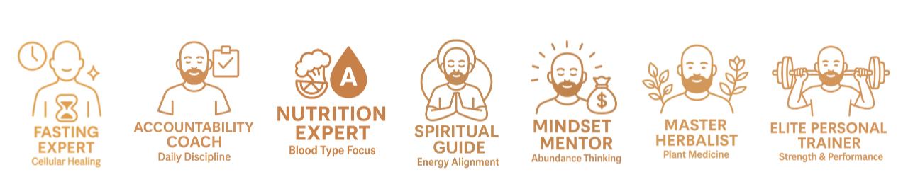 Fasting · Blood Type Nutrition · Fitness · Mindset · Herbalism · Wealth